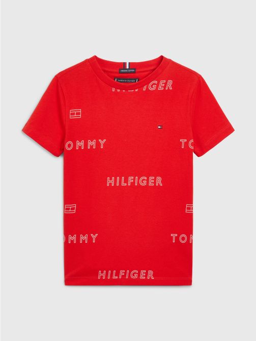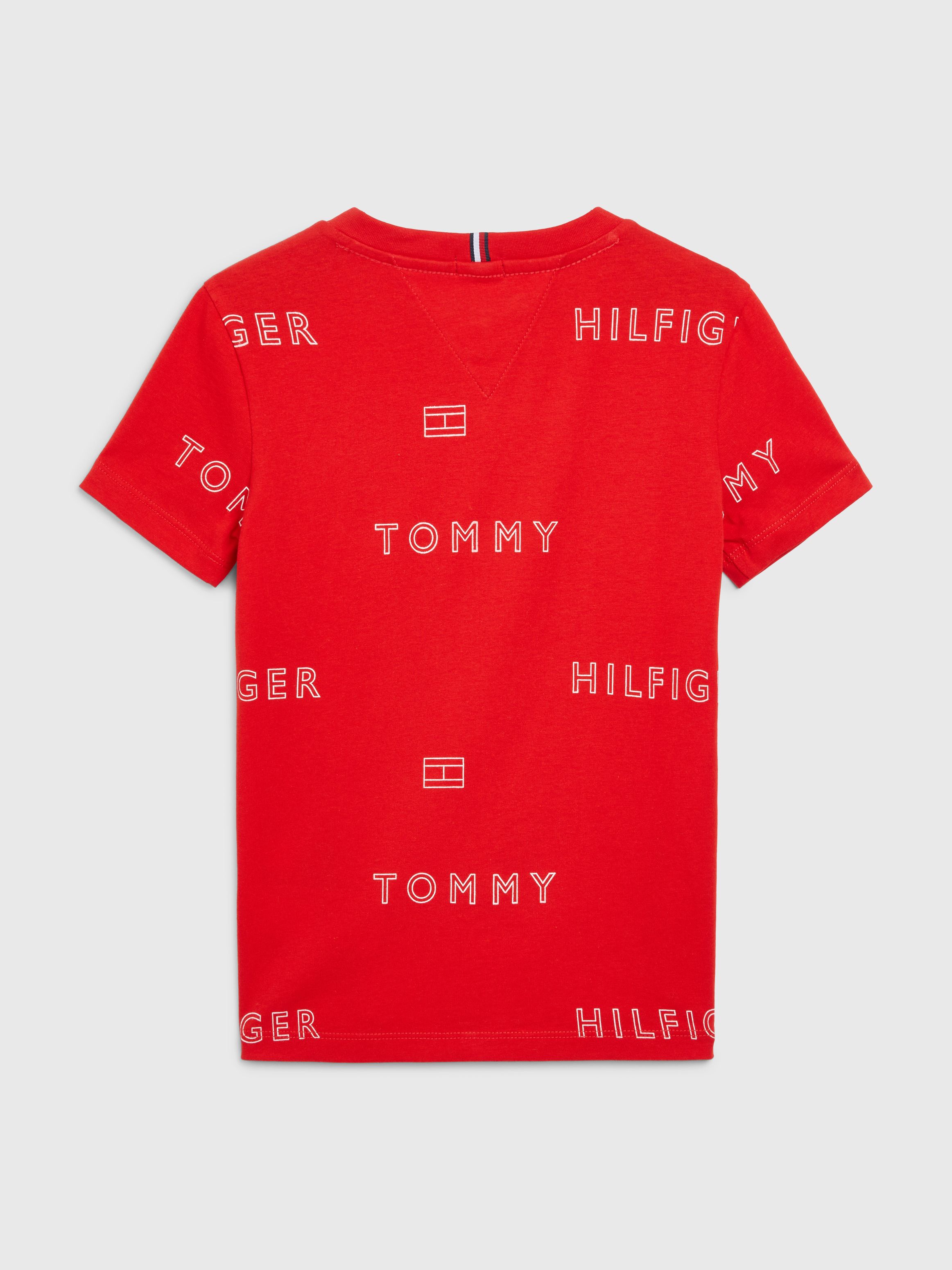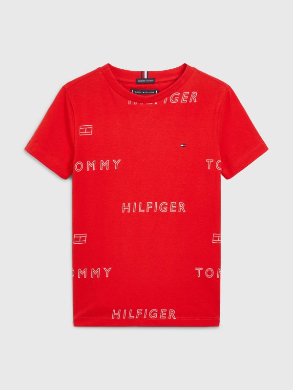 • Pure organic cotton jersey • All-over Tommy Hilfiger logo and flag print • Crew neck • Tommy Hilfiger branding • Tommy Hilfiger flag embroidery on chest