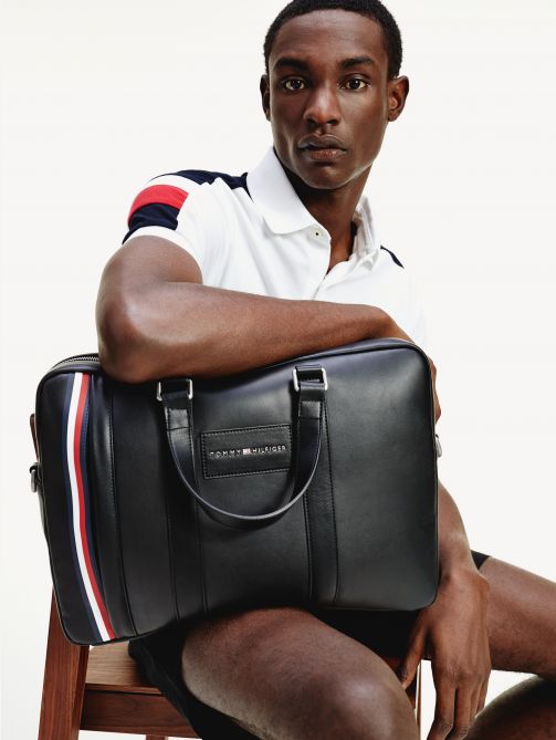 • Smooth finish • Zip closure • Adjustable, removable shoulder strap • One main compartment • Four interior slip pockets • One interior zipped pocket • Trolley strap • Tommy Hilfiger metal logo on front • Tommy Hilfiger branding