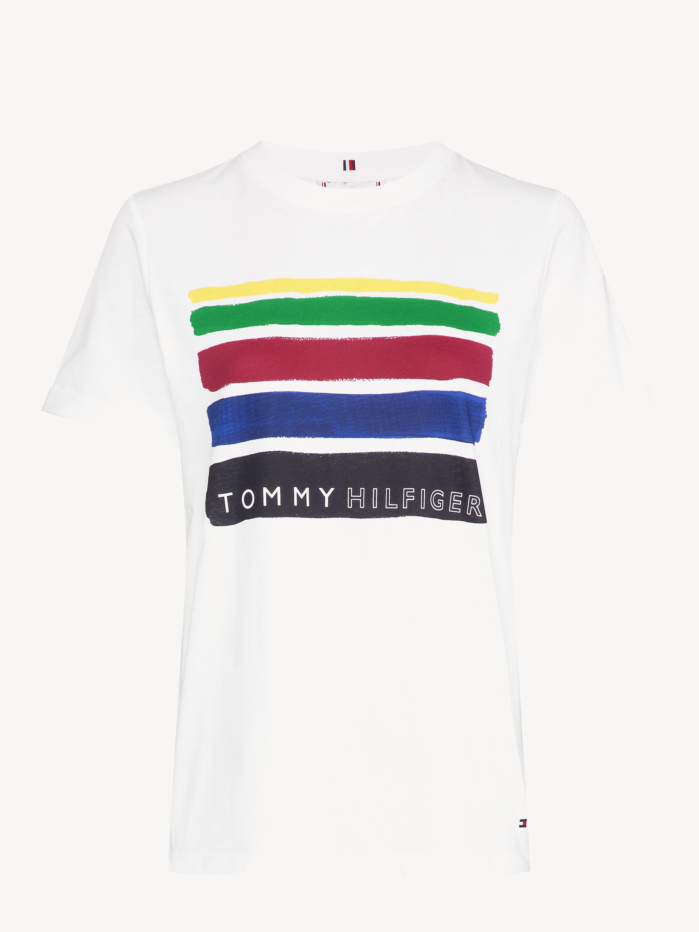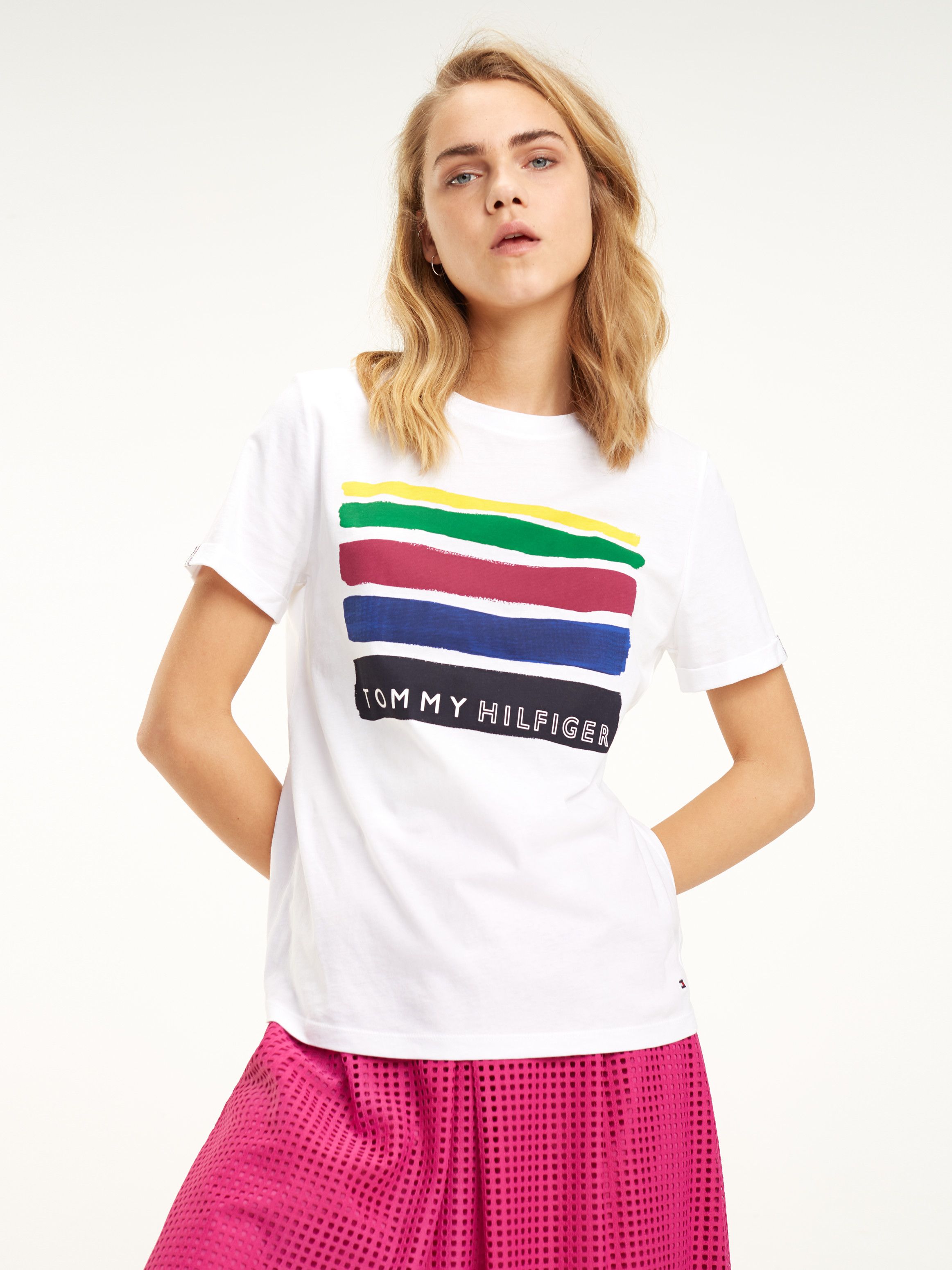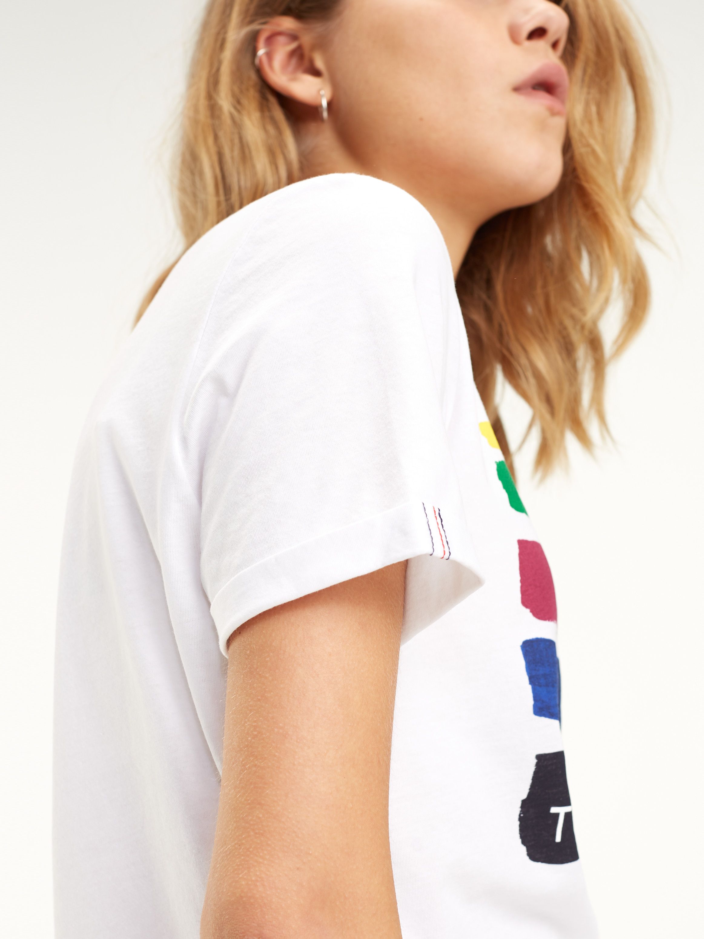 • Pure organic cotton • Colour-blocked Tommy Hilfiger logo on chest • Crew neck • Signature tape inside neckline and on sleeves • Tommy Hilfiger flag embroidery at hem