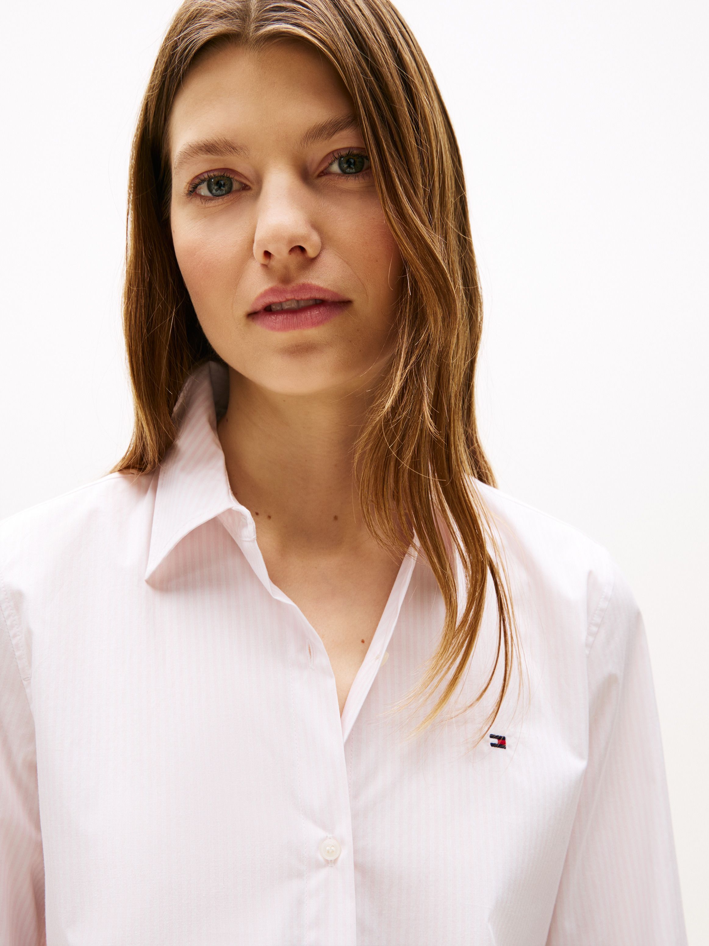 Create a chic look with this shirt, crafted from stretch cotton poplin for an elevated feel and featuring prominent flag embroidery.