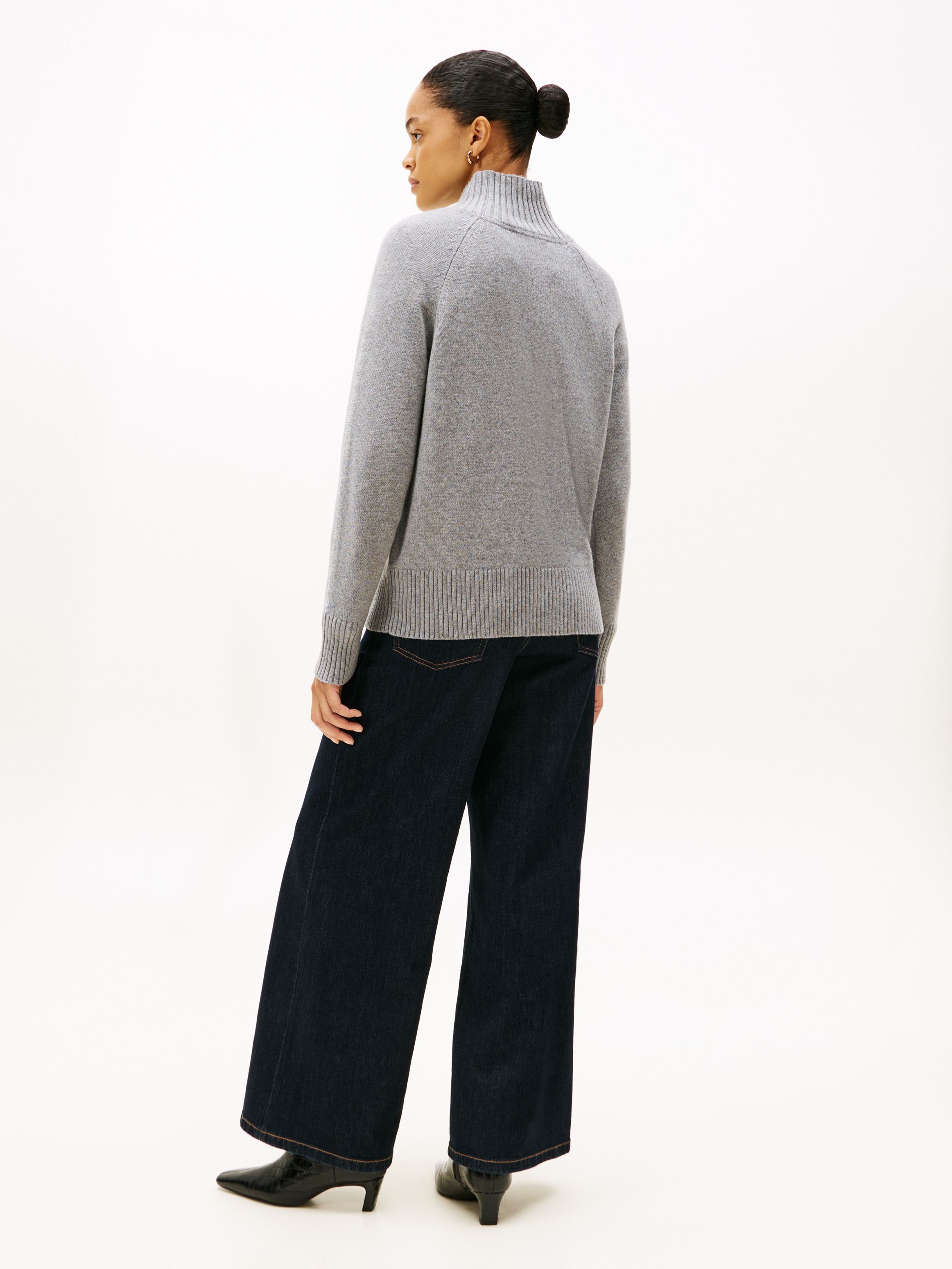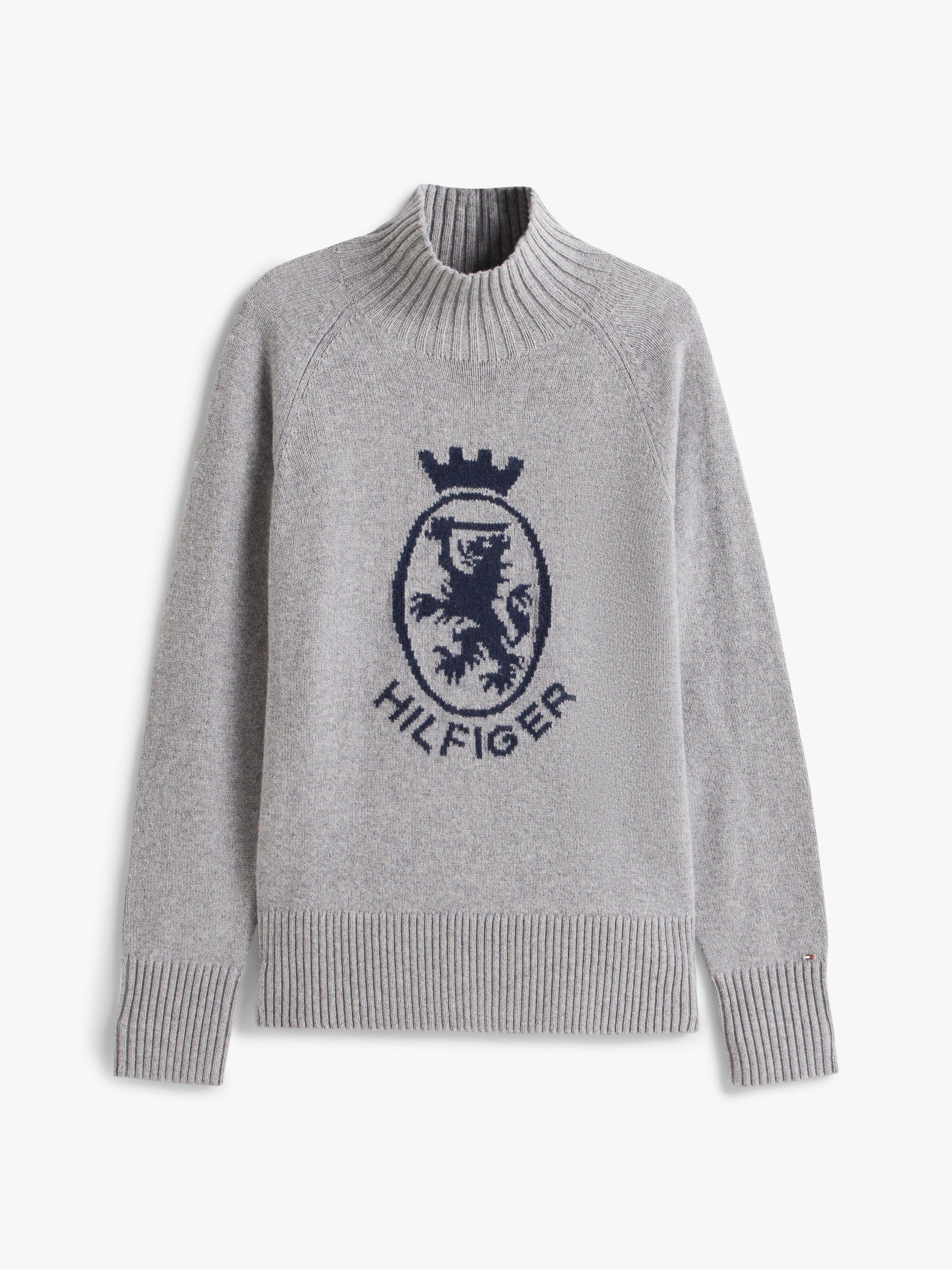 • Pure wool • Mock neck • Rib-knit collar, cuffs and hem • Signature tape inside neckline • TH crest knitted on chest • Tommy Hilfiger branding • Tommy Hilfiger metal flag on cuff